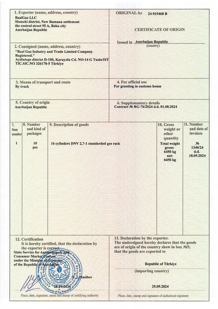 Real-Qaz, Azərbaycan Fövqəladə Hallar Nazirliyindən bütün növ balonların hidrostatik sınaqlarını həyata keçirmək üçün rəsmi icazəyə malikdir. Bu, bizə avadanlıqların təhlükəsizliyini sertifikatlaşdırmaq və rəsmi sənədlər təqdim etmək imkanı verir — bu da bizi regional bazarda fərqləndirir.