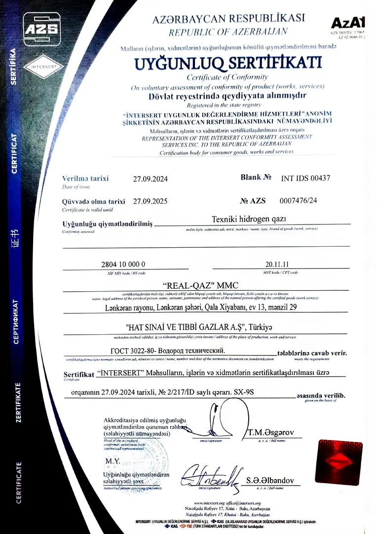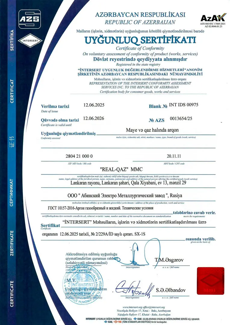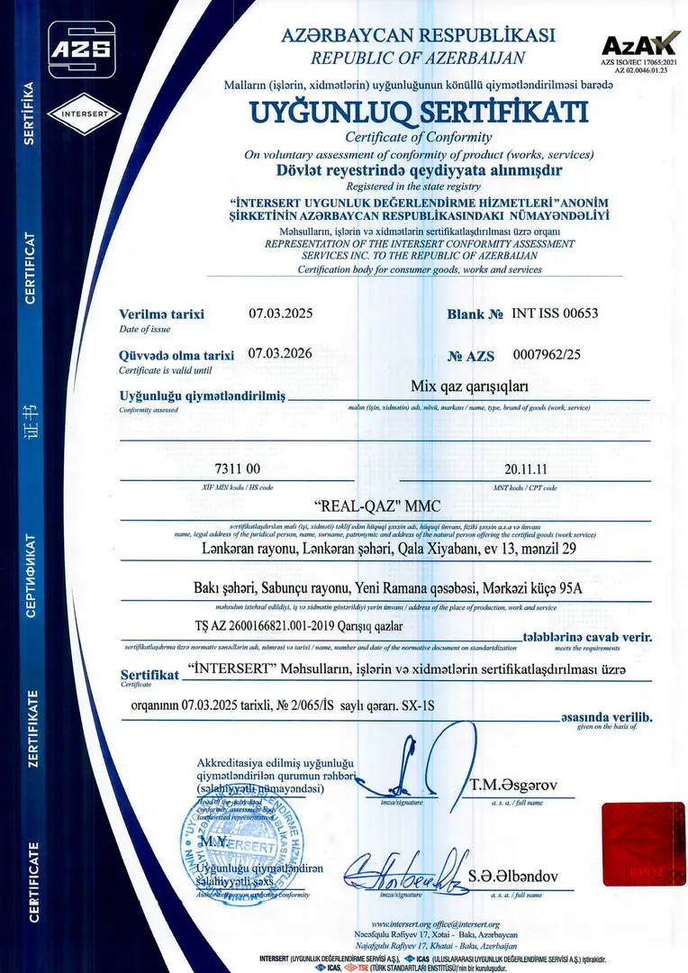 Akreditə olunmuş laboratoriyalarımız istehsal olunan hər partiyanı analiz edir və Real-Qaz-la əməkdaşlıq edərkən yalnız qaz almırsınız — siz dəqiqlik, etibarlılıq və inam əsasında qurulmuş əlaqələrə sərmayə qoyursunuz.