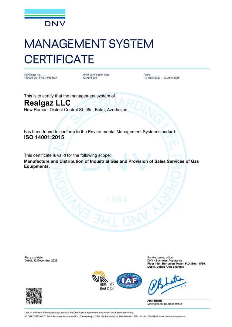 - ISO 14001:2015 - Ətraf Mühitin Mühafizəsi Standartları