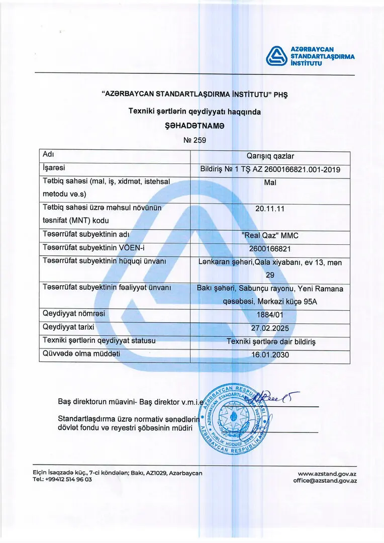 Akreditə olunmuş laboratoriyalarımız istehsal olunan hər partiyanı analiz edir və Real-Qaz-la əməkdaşlıq edərkən yalnız qaz almırsınız — siz dəqiqlik, etibarlılıq və inam əsasında qurulmuş əlaqələrə sərmayə qoyursunuz.
